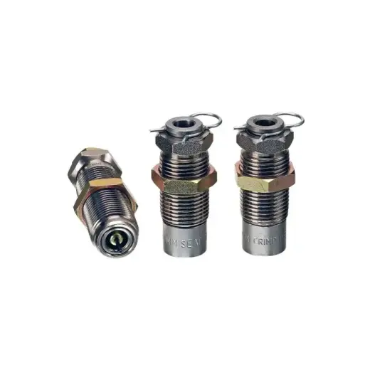Taper Crimp Die - krimpovací matrice má podobně jednoduchý systém čištění jako je u usazovací matrice. Dříve se matrice musela odšroubovat z hlavy a rozebrat, nyní stačí vycvaknout svorku, matrice se uvolní a bez ztráty nastavení se jednoduše vyčistí.