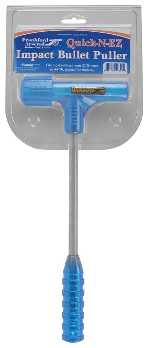 Delaborační kladívko, které využívá kynetickou sílu k delaboraci nábojů od 22 Hornet po 45-70, s okrajem nebo bez okraje.