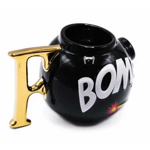 Hrnek je ve tvaru černé kreslené bomby se zlatým písmenem F místo ouška a výrazným nápisem BOMB přes celý povrch. Ideální doplněk do domácnosti nebo kanceláře, který vám zlepší ráno a pobaví každého, kdo vás zná. Díky velkorysému objemu (cca 470 ml) se do něj vejde pořádná dávka ranní energie.
