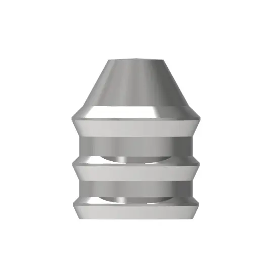 Stoupáním průměru vodicích kroužků střely REAL od základny nahoru bude jedna z drážek dostatečně velká, aby se do ní mohlo vyrýt drážkování vývrtu. U volnější hlavně bude střela klesat až k hornímu vodicímu kroužku, u těsnější hlavně možná budete muset střelu zatlačit palcem, abyste vyryli spodní kroužek.