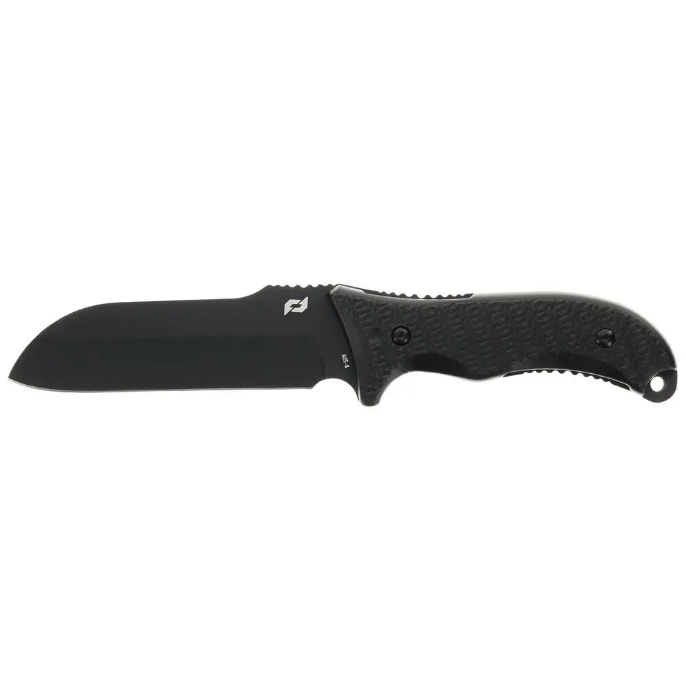 Kvalitní nůž Schrade Bedrock Sheepsfoot s pevnou práškovanou čepelí a protiskluzovou pogumovanou rukojetí.
