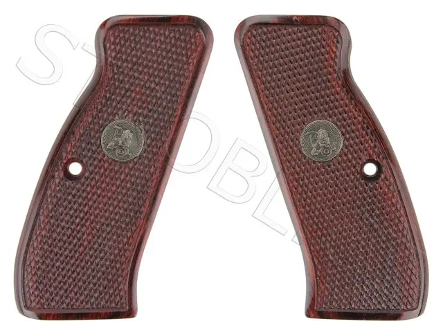 Pistolové střenky Pachmayr Renegade pro CZ 75 Compact. Červené dřevo, jemně zdrsněný povrch.