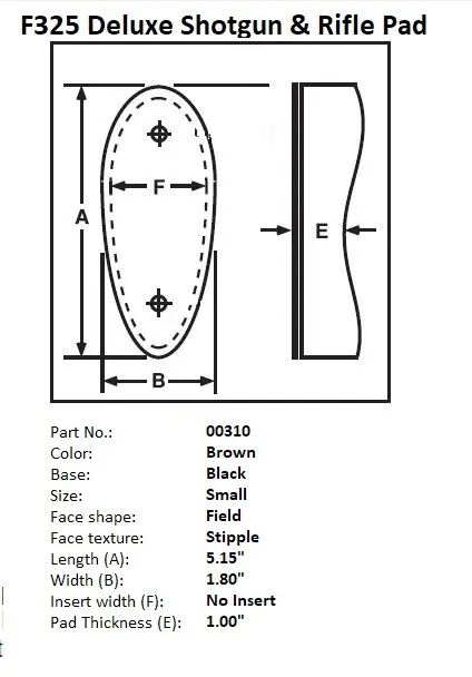 Hnědá protiskluzová botka s černou základnou Pachmayr F325 Deluxe je oblíbená pro svůj klasický vzhled a výkonné tlumení zpětného rázu. Pro brokovnici nebo pušku.