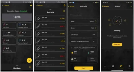 - Pokročilé balistické údaje s přesností +/- 0,1 % poskytují skutečnou úsťovou rychlost, rychlost při výstřelu a vypočtený balistický koeficient G7.