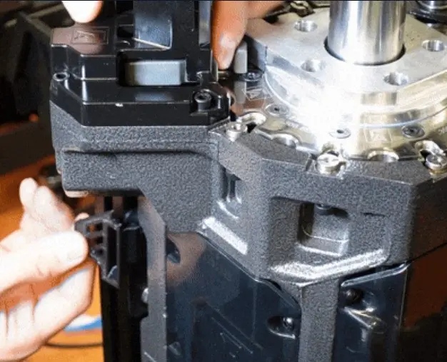 Zarážka blokující podávání nábojnic na přebíjecím lisu Frankford Arsenal X-10. Užitečný pomocník při čištění shellplatu, údržbě nebo seřizování.