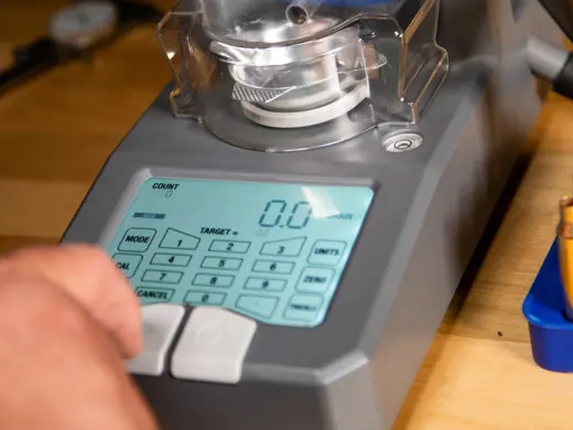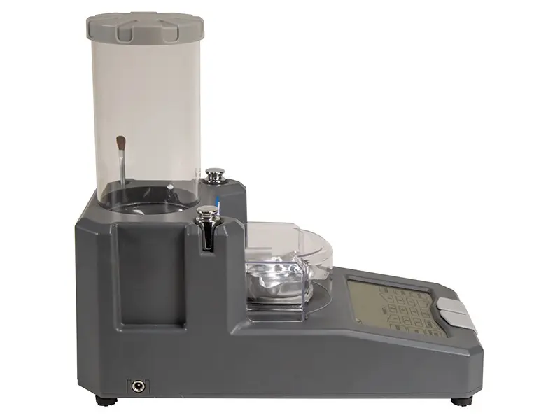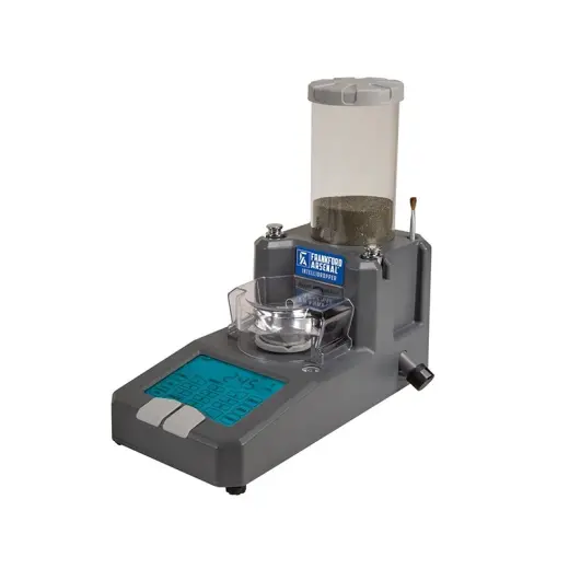 Chytrá digitální váha a prachovač Frankford Arsenal Intellidropper nabízí vysokou přesnost +/- 0,1 grainu, snadné ovládání, rychlost a přesnost.