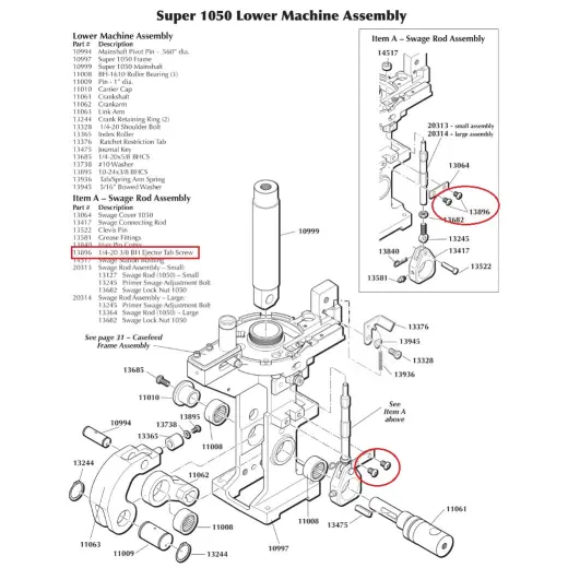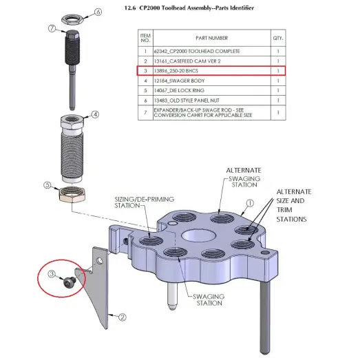 Dillon 250-20 BHCS / ¼"-20 x 3/8" BHCS (#13896). Originální náhradní díl pro přebíjecí lisy Dillon Precision.