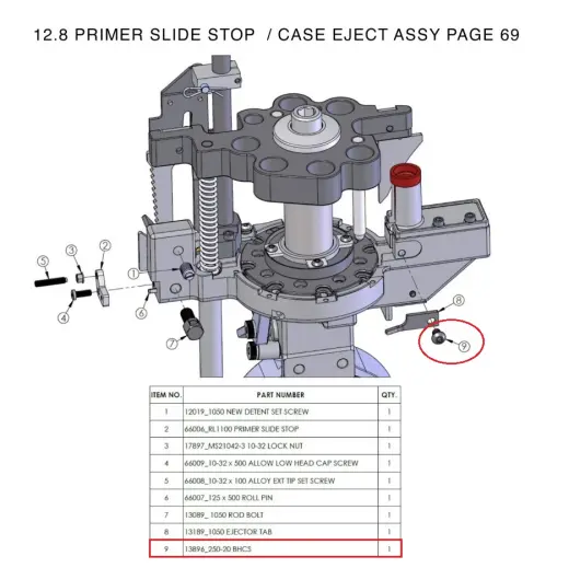 Dillon 250-20 BHCS. Originální náhradní díl pro přebíjecí lisy Dillon Precision.