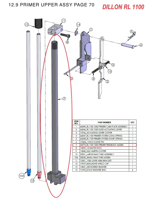 Dillon Primer Feed Body / Shield (#20773). Originální náhradní díl pro přebíjecí lisy Dillon RL 1100 a Super 1050.
