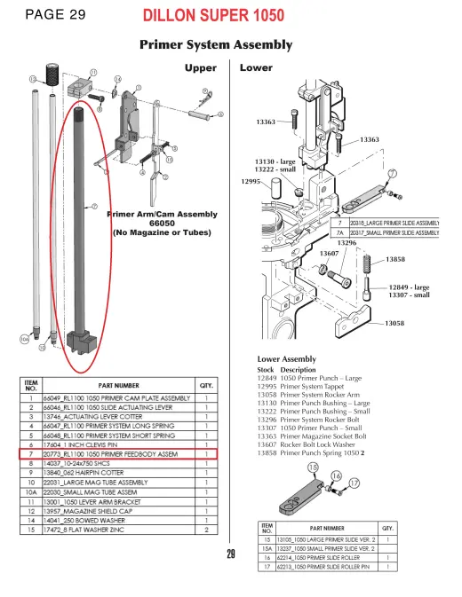 Originální náhradní díl pro přebíjecí lisy Dillon RL 1100 a Super 1050.