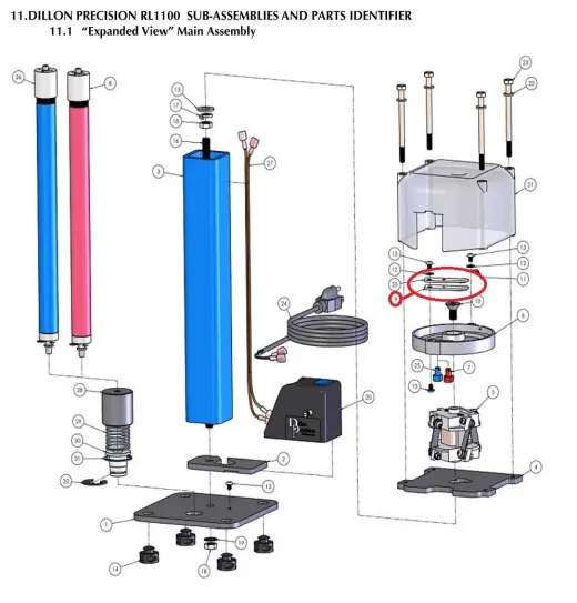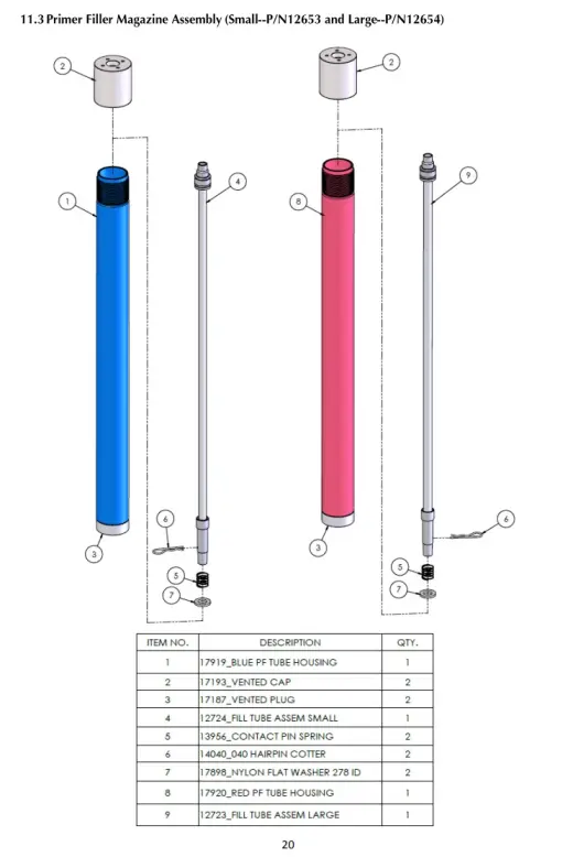 Originální náhradní díl č.9 pro automatický plnič zápalek Dillon RF-100 Primer Filler LG (určený pro velké zápalky.)