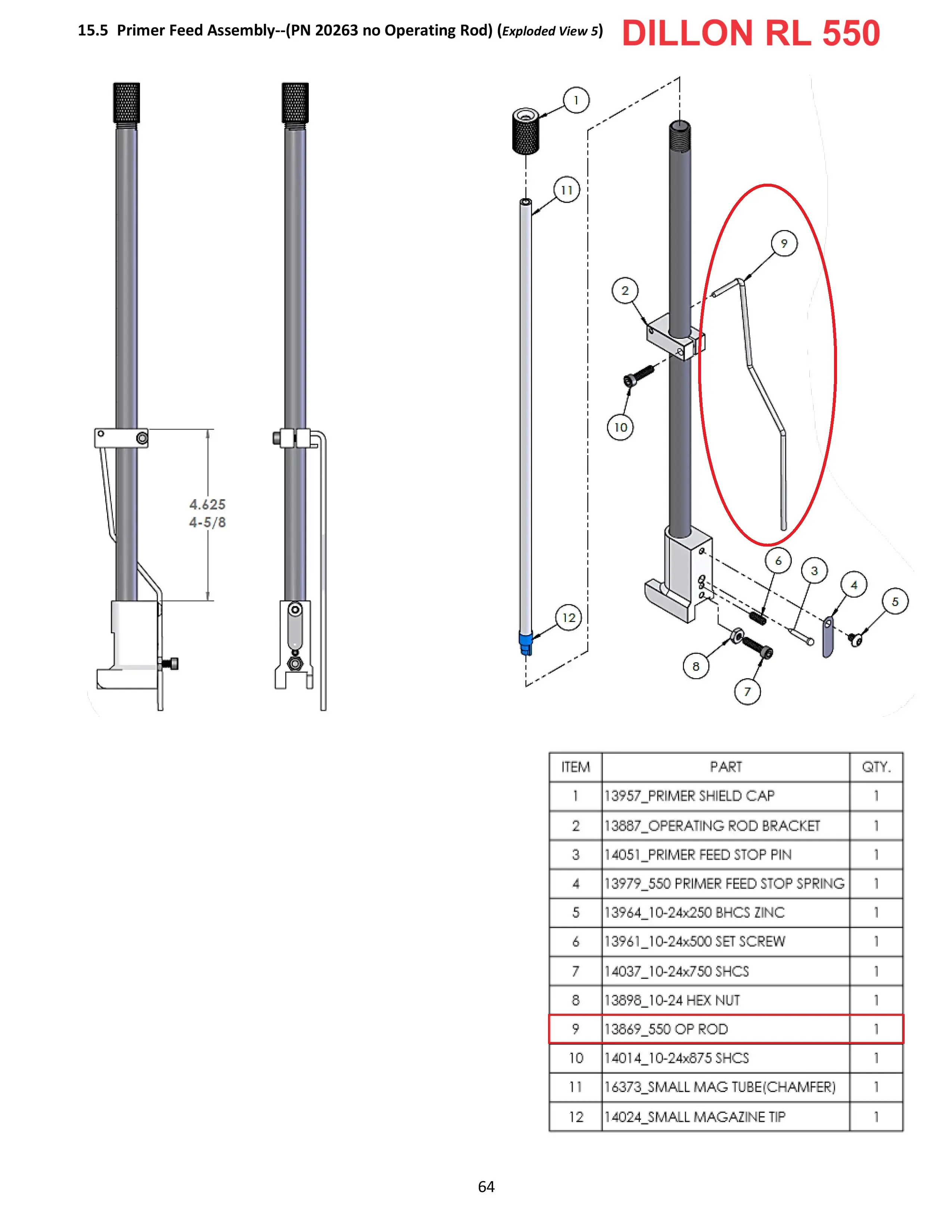 Dillon RL550 Primer System Operating Rod