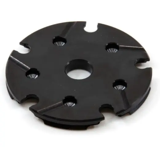 Shellplate s vyfrézovanou drážkou pro pružinu na přidržení nábojnic, která se připevní k rámu přebíjecího lisu a bezpečně drží nábojnice na místě během cyklování lisu. Díky univerzální pružině již nemusíte používat poziční tlačítka (Locator Buttons).