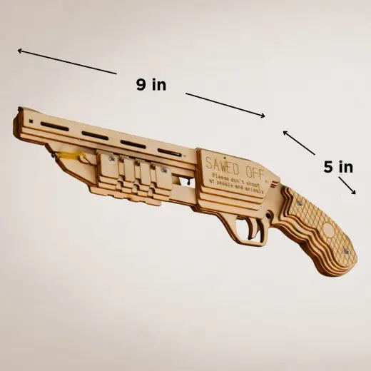 3D dřevěný model zkrácené brokovnice se střílením na gumičky Ruber Band Shot Gun Puzzle Wood. Dřevěná skládačka vhodná pro děti i dospělé. Plně funkční - bezpečně střílí gumičkami.