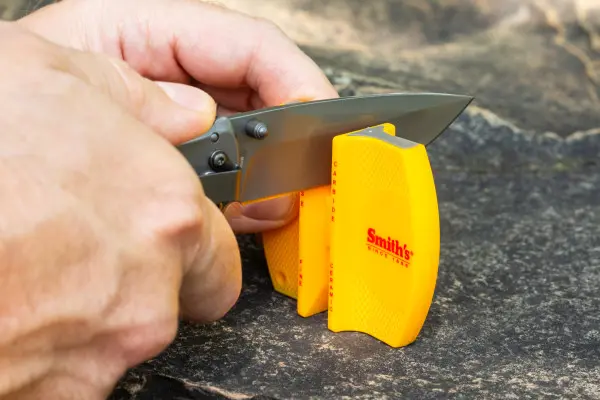 Dvoustupňový brousek na nože Smith je vybaven dvěma břity z karbidu wolframu s přednastavenými úhly, které zajišťují vždy dokonalé ostří.