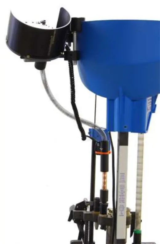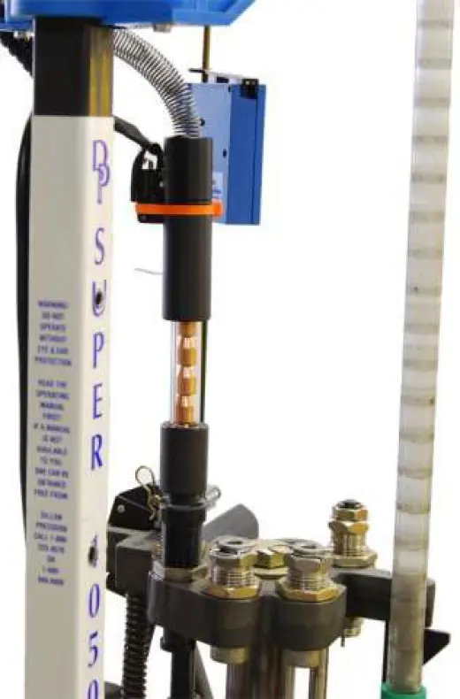 Poznámka: Automatický podavač střel Mr. Bulletfeeder pro puškové ráže neobsahuje upravenou vložku prachovače. Speciální rozhrdlení není možné provádět při prachování (jako u pistolových ráží), protože by ve vložce zůstal příliš úzký otvor pro spolehlivé vypuštění prachové navážky. Rozhrdlení je tedy třeba vyřešit jinak, například pomocí Lyman "M" Die - tento způsob je však možný provést pouze na lisu Dillon Super 1050.