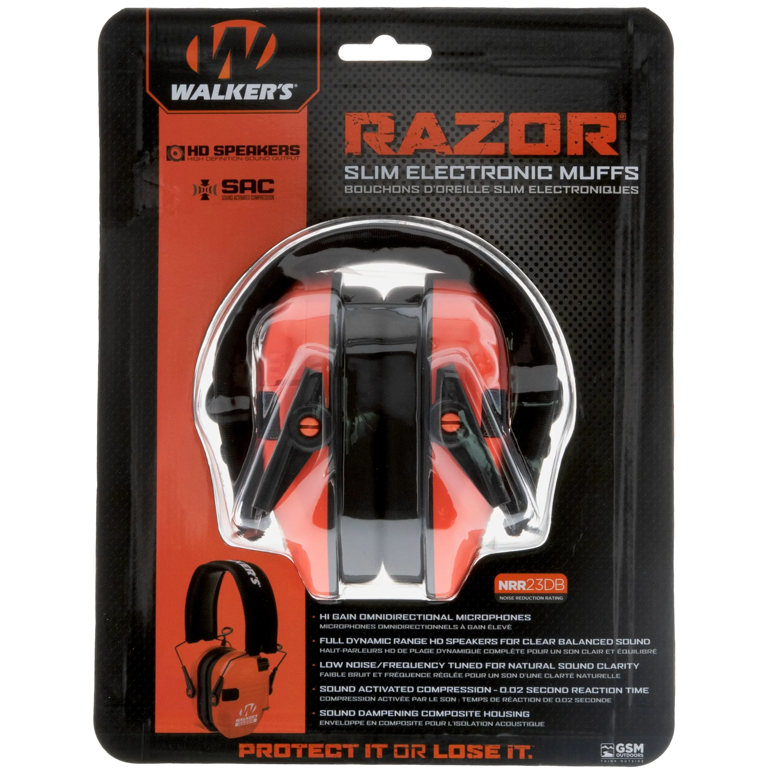 Ochranná elektronická sluchátka WALKER´S RAZOR SLIM ELECTRONIC MUFFS s redukcí hluku o 23 dB. Ideální pro lov, sportovní a rekreační střelbu. 2 baterie AAA součástí. Barva: korálová (oranžovo-růžová).