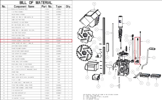 Priming Assembly – Large Primer (#1149791). Originální náhradní díl č. 13 pro progresivní přebíjecí lis Frankford Arsenal X-10.