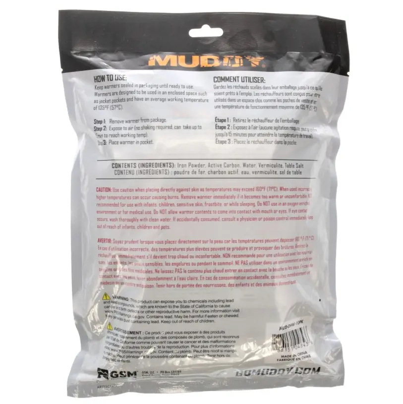 Vzduchem aktivovaný ohřívač rukou MUDDY – stačí vložit do kapsy nebo rukavic, hřeje až 8 hodin. Netoxický, ekologicky neutrální. Ideální pro lov, turistiku, sport i práci v chladu. 10 párů v balení.