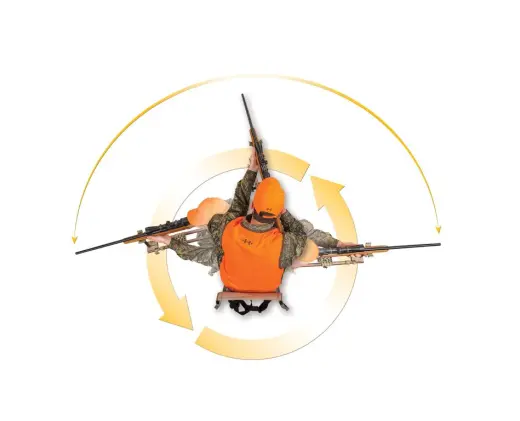 ChairPod drží vaši zbraň v připravené poloze a uvolňuje ruce pro používání dalekohledu, dálkoměru, nebo ohřívání v kapsách. Inovativní systém otočných ramen s více ložisky poskytuje plynulý a tichý pohyb i do extrémních úhlů, s minimálním pohybem těla. Křeslo se tiše otáčí o 360 °, aby vás dostalo na cíl, ať už je kdekoli.