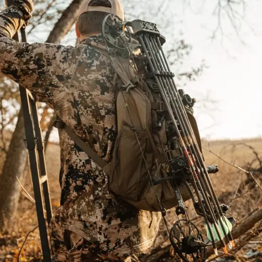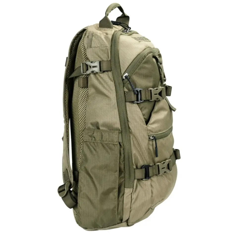 Ultralehký batoh (28 l) vážící jen 0,77 kg. Tichý a odolný ripstop nylon, tiché zipy, možnost uchycení pušky/luku/stativu, kompatibilní s hydrovakem i notebookem. Skvělý pro lov i každodenní nošení.