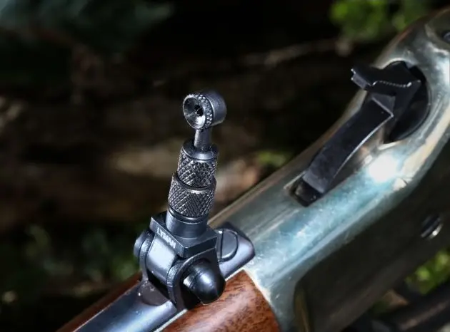 Mířidla Lyman No. 2 Tang Sight pro pákovou pušku Henry.