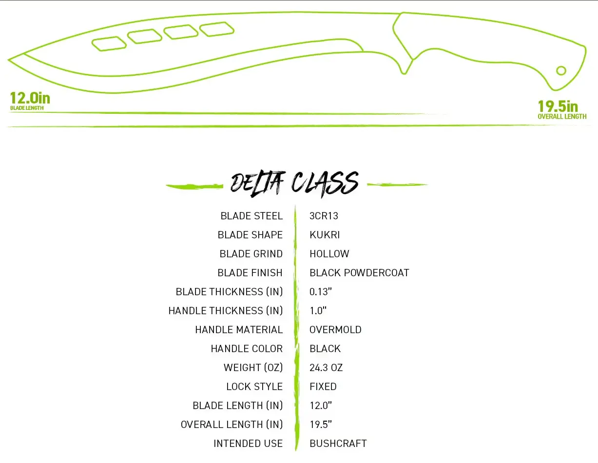 Schrade Decimate Kurki, ze třídy Schrade Delta, je robustní a spolehlivá mačeta s bezkonkurenční odolností a špičkovým designem, který od značky Schrade očekáváte. Je vhodná pro likvidaci křoví, vysokého porostu a dalších překážek.