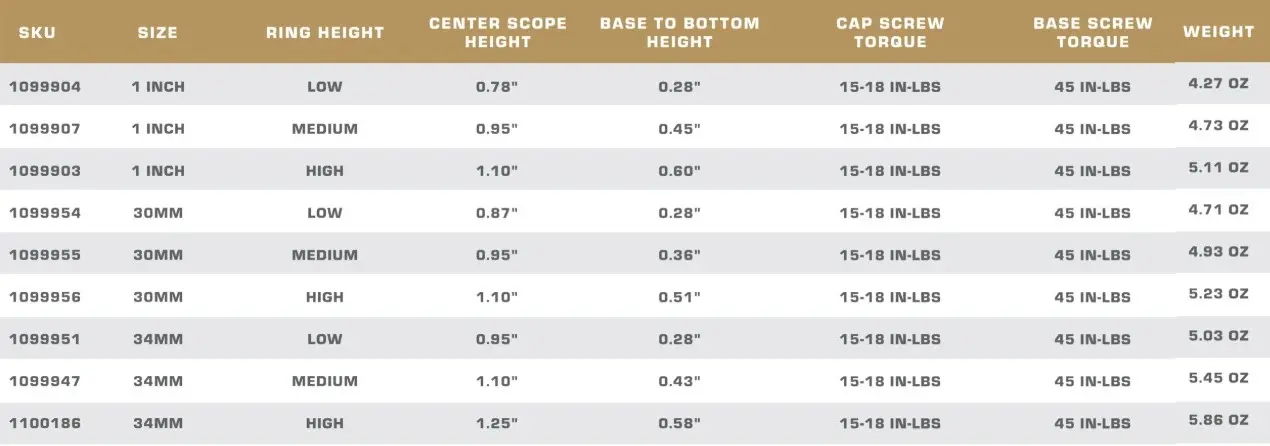 Dvoudílné montážní kroužky WHEELER 2 PIECE PICATINNY SCOPE RINGS s integrovanou vodováhou pro pevné uchycení optiky na Picatinny lištu. Průměr tubusu 34 mm, střední profil.
