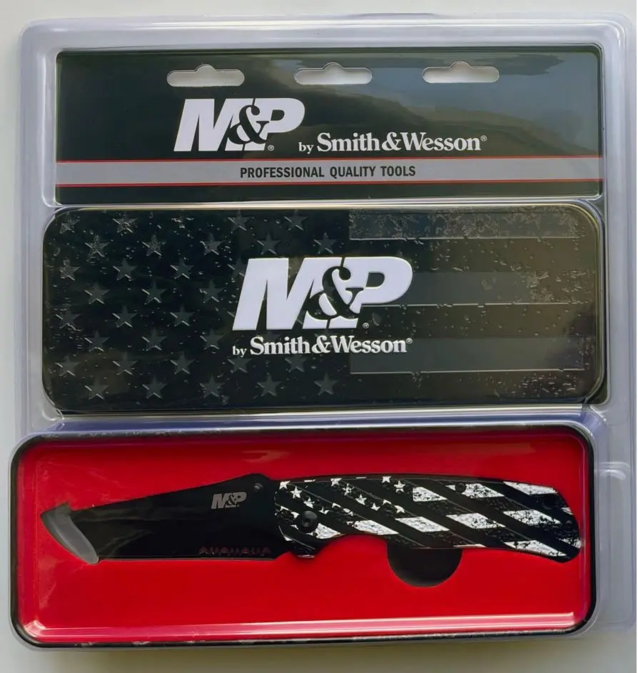 Nůž je dodáván v originální dárkové plechové krabičce Smith&Wesson v designu americké vlajky, takže se skvěle hodí jako dárek.