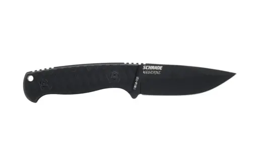 Kvalitní nůž Schrade s pevnou čepelí Drop Point z kvalitní nerezové oceli AUS-10 s teflonovou povrchovou úpravou. Odolná rukojeť z G10 s otvorem pro zavěšení. Včetně pouzdra s brouskem.