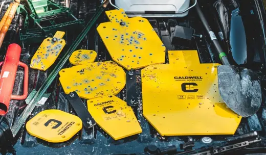 Ocelový terč Caldwell se třemi řešeními zavěšení je vhodný pro soutěžní, tréninkové i rekreační použití.