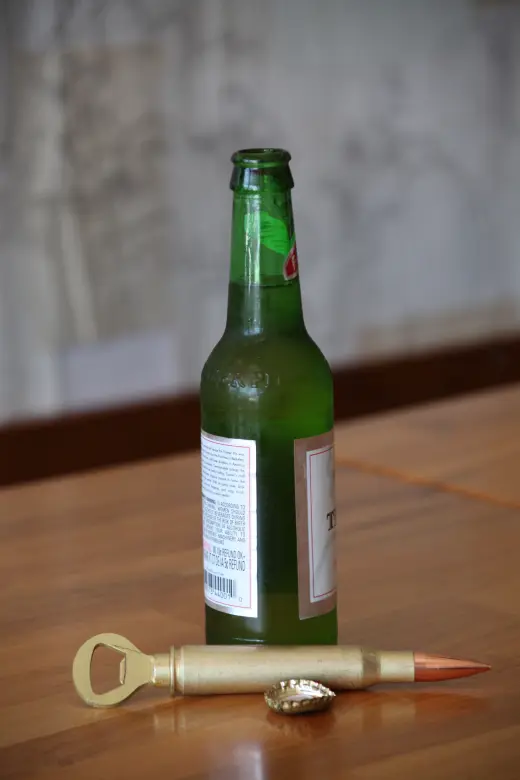 Otvírák na pivo je vyroben z vystřelené nábojnice skutečného náboje ráže 50. Nábojnice je nyní neškodná, ale stále má sílu! Otvírák se snadno se používá a je vhodný i jako dekorace na Váš bar nebo originální dárek pro zapálené střelce.