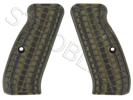 Pistolové střenky Pachmayr G-10 Tactical pro CZ 75 Compact. Černo-zelená barva, hrubě zdrsněný povrch.