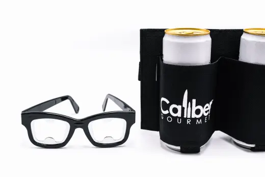 Opasek na nošení piva a jiných nápojů s otvírákem na lahve. Nastavitelný popruh pojme až 6 nápojů. Včetně brýlí majících místo sklíček otvíráky na lahve. Caliber Gourmet Glasses Bottle Opener with Beer Belt.