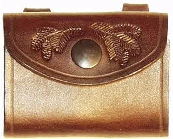Uzavřené pouzdro z hověziny na 5 kulových nábojů. Ze zadní strany úchyt na opasek.