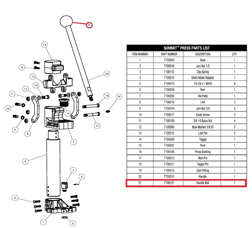 RCBS SUMMIT RELOADING PRESS Handle Ball