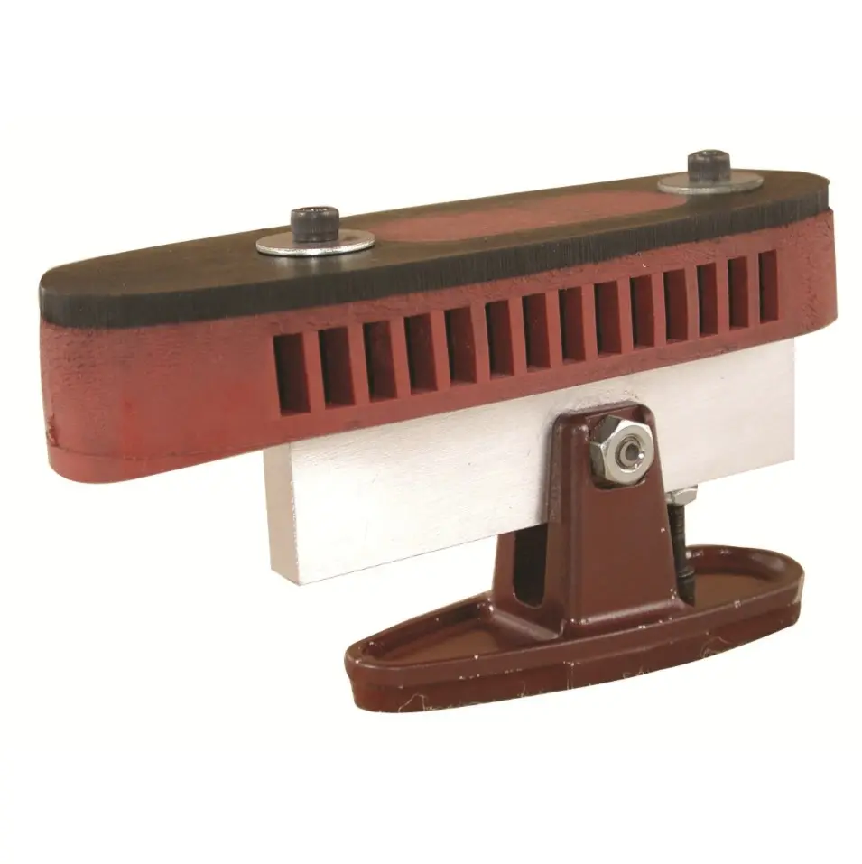Slouží zároveň jako stabilní držák při broušení botky mimo pažbu, což minimalizuje riziko poškození samotné pažby. Určen pro použití s pásovou nebo kotoučovou bruskou upevněnou na stole.