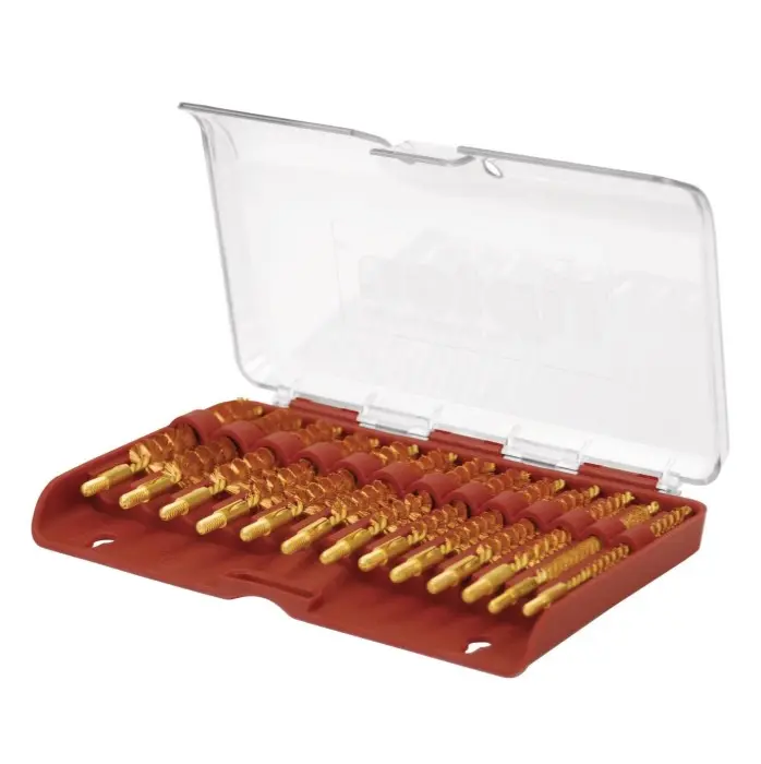 Praktická 13dílná sada bronzových vytěrákových kartáčků Tipton z řady Best Bore Brushes, navržená speciálně pro čištění puškových hlavní v rážích .17 až .45. Každý kartáček je kalibrově přesný, což zajišťuje optimální kontakt s vývrtem hlavně a tím i maximální účinnost při odstraňování nečistot a zbytků po výstřelu.