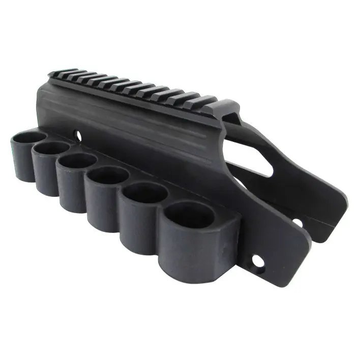 Boční úchyt na 6 brokových nábojů ráže 12 GA s horní Picatinny lištou pro brokovnice Mossberg 500, 590 a 930