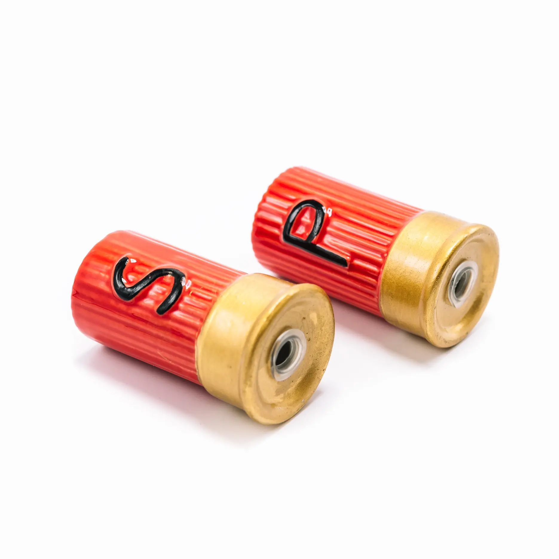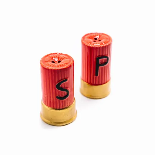 Originální sada solničky a pepřenky Caliber Gourmet ve tvaru brokového náboje se stane originálním doplňkem vašeho stolu. Vyrobeno z keramiky. Dodejte svému jídlu „výstřel“ soli a pepře.