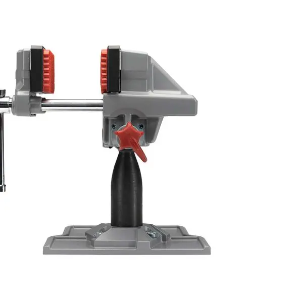 - Utahovací vratidlo umožňuje snadné nastavení čelistí svěráku, zatímco ergonomické červené kolečko zajišťuje okamžitou a pevnou fixaci v jakémkoli požadovaném úhlu