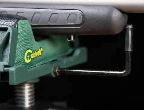 Tři samostatně nastavitelné nožičky zajistí perfektní stabilitu na jakémkoli povrchu. Přední doraz udržuje zbraň vždy ve stejné poloze pro konzistentní střelbu. Nastavitelná opora stolice je kompatibilní se všemi vaky Caldwell Deluxe Universal Front Rest Bags.