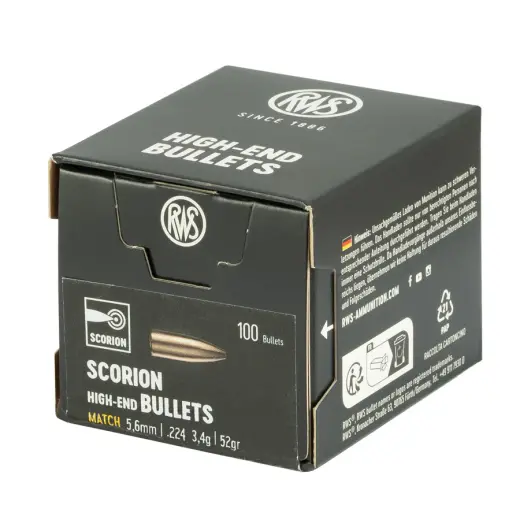 Střely RWS Scorion 5,6mm, dia .224, 52grs (3,4g), Kód produktu: 2313343.