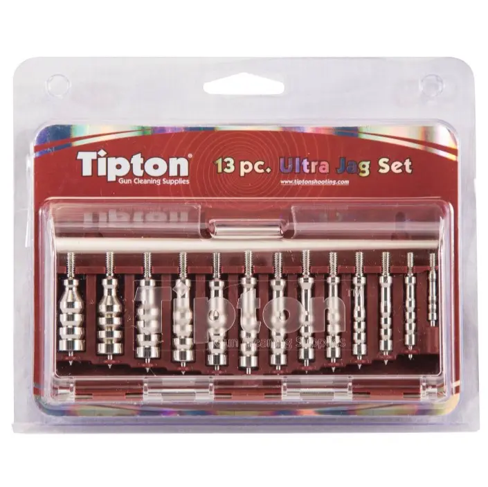 Praktická 13dílná sada kalibrově specifických čisticích trnů Ultra Jag od značky Tipton zajišťuje, že budete mít vždy po ruce ten správný trn pro daný kalibr.
