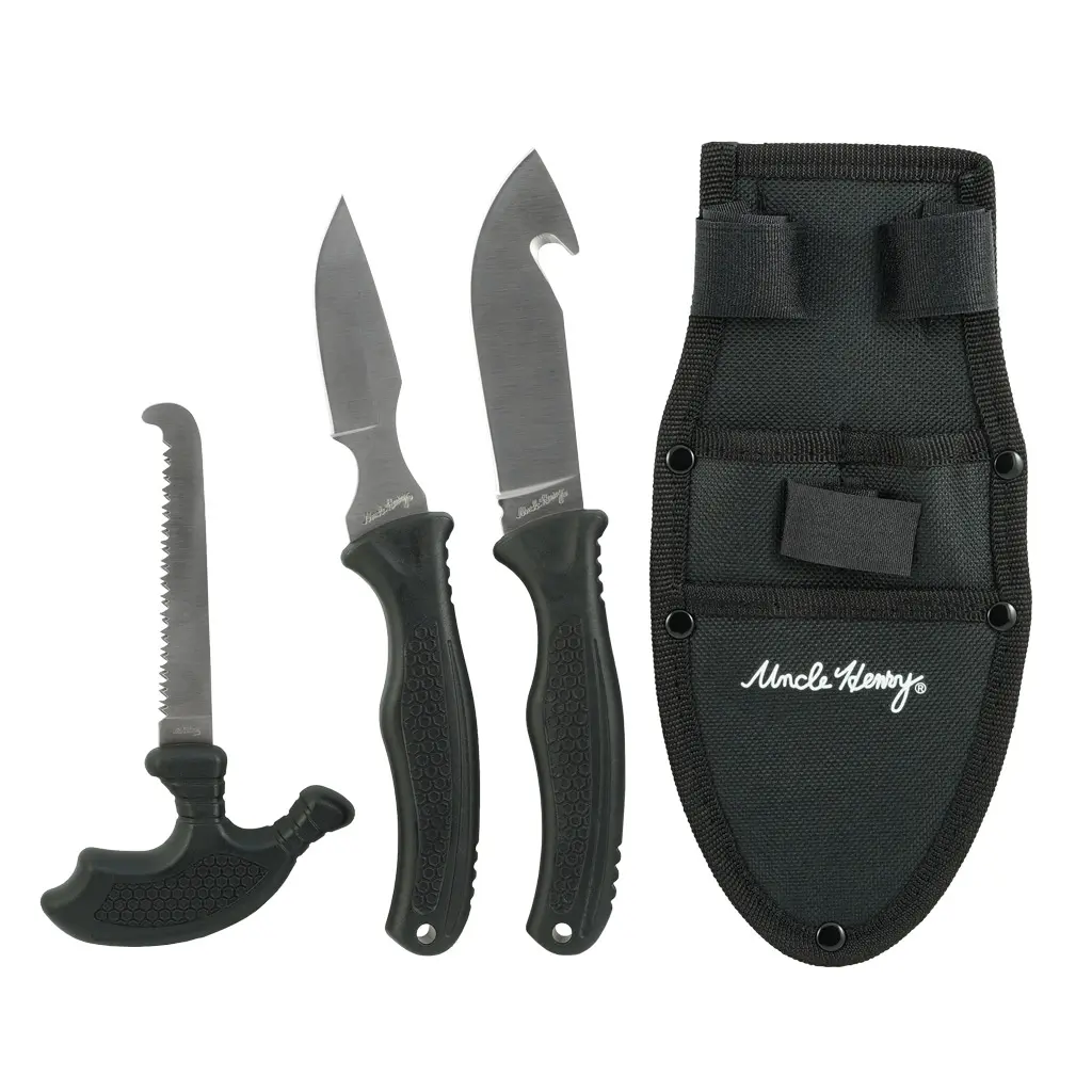 Uncle Henry Hunting Kit je lovecká sada nožů určených nejen lovcům, ale i všem outdoorovým nadšencům. Sada obsahuje 3 nástroje, které usnadňují zpracování zvěřiny i práci a zdolávání překážek v přírodě.