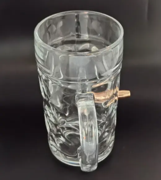 Unikátní design: Sklenice na pivo s falešnou kulkou ráže .50 s iluzí "průstřelu" skrz sklenici