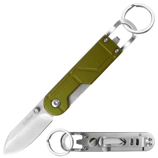 Tento praktický multifunkční zavírací nůž kombinuje několik užitečných funkcí v jednom kompaktním designu. Disponuje 5cm čepelí z nerezové oceli s pojistkou, která zajišťuje bezpečné používání. Otvírák na lahve je praktickým doplňkem pro každodenní použití i outdoorové aktivity. Díky kapesnímu klipu lze nůž snadno připevnit na kapsu nebo opasek, zatímco klip na bankovky umožňuje bezpečné uložení hotovosti. Pomocí kroužku lze nůž připnout na klíče a mít jej tak vždy po ruce.