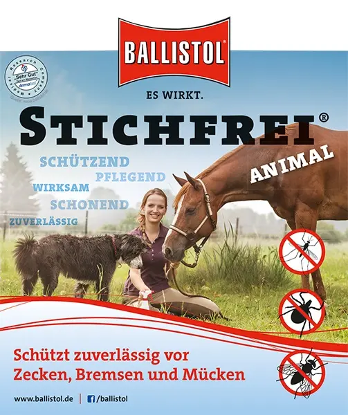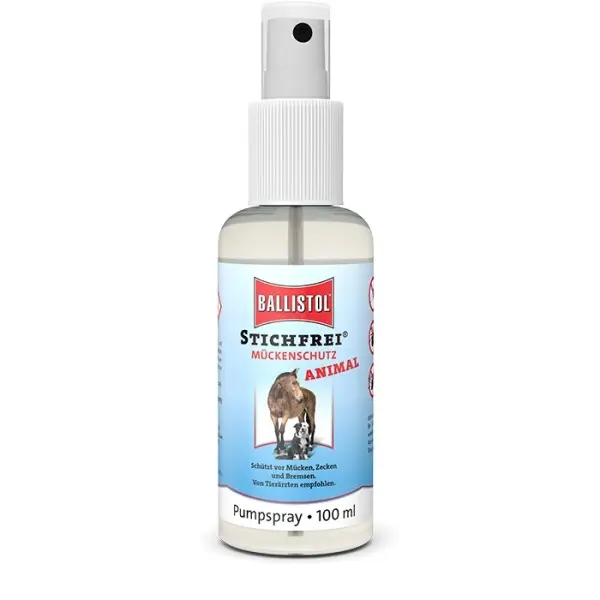 Velmi účinný zvířecí repelent Ballistol Stichfrei Animal z přírodních olejů s příjemnou vůní ochrání vaše zvířecí mazlíčky před komáry, klíšťaty a dalším hmyzem.
