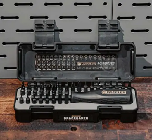 Sada šroubováků Wheeler® 36 Piece Spacesaver je malá, ale spolehlivá. Nabízí praktický výběr imbusových, křížových, plochých bitů a bitů Torx, které jsou ideální pro běžné domácí a jiné všeobecné použití. Díky praktickým kompaktním rozměrům se tato sada ideálně hodí do střeleckých brašen.