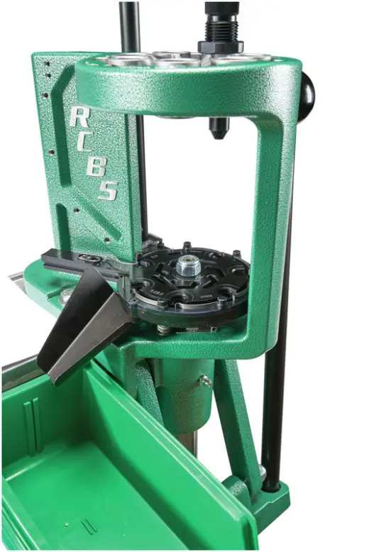 Rychlá výměna s velkou kapacitou práškového zásobníku snižuje počet nutných naplnění. Navíc, rychlá výměna vypouštěcí trubice umožňuje vypustit práškovou měrku bez jejího odstranění z lisu. Sestavy QC metering umožňují zkrácení doby nastavení při přepínání prášků. Sedm stanic umožňuje progresivní přebíjení podle vašich představ: vkládání střel a rádlování samostatně. Použijte podavač střel, ale také zámkovou nebo práškovou kontrolní matrici(Lock-Out nebo Powder Checker Die).